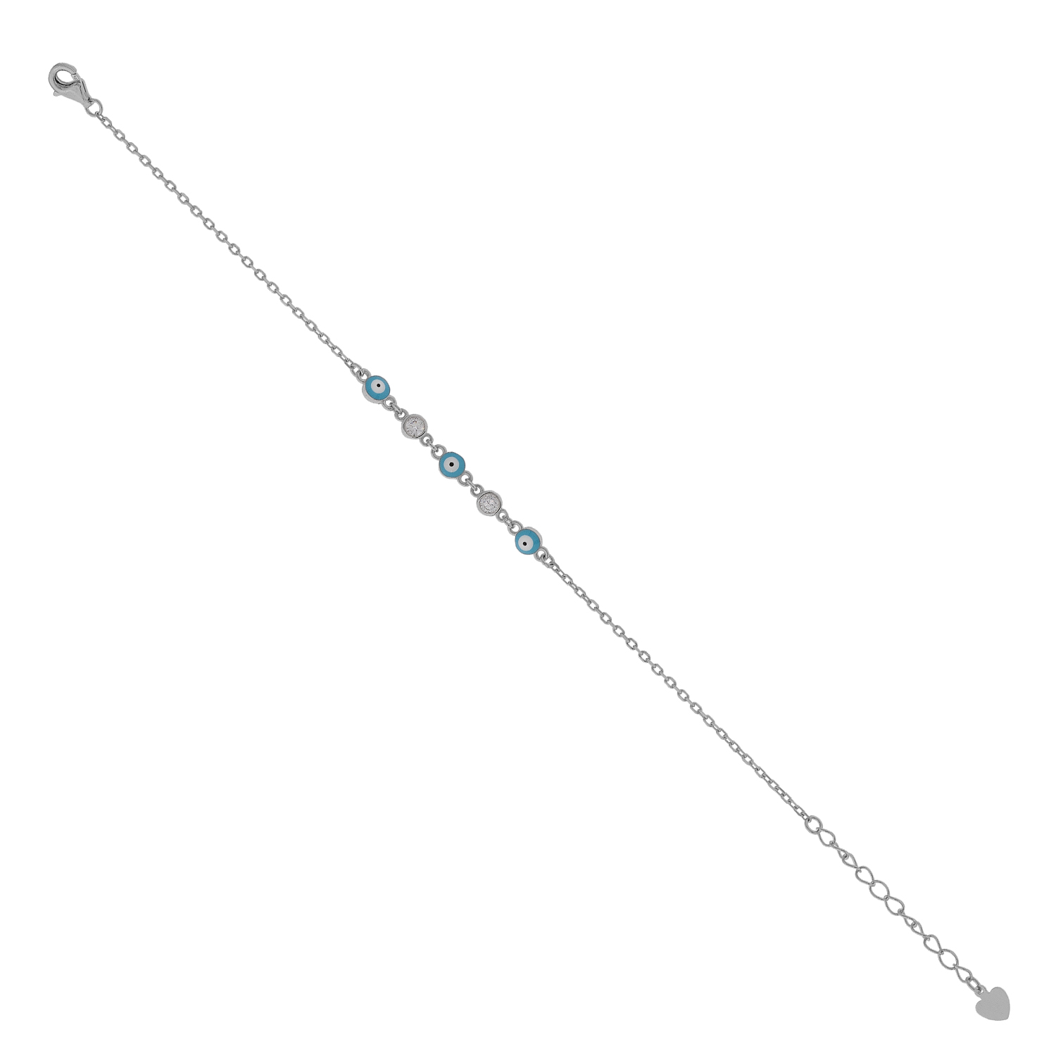 Βραχιόλι γυναικείο από ασήμι 925° με λευκό επιπλατίνωμα,ματάκια με σμάλτο και ζιρκόν πετρες.