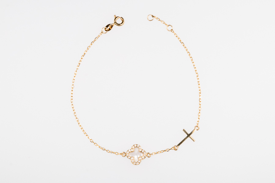 Βραχιόλι γυναικείο από κίτρινο χρυσό 14 καρατίων Van Cleef με σταυρό.