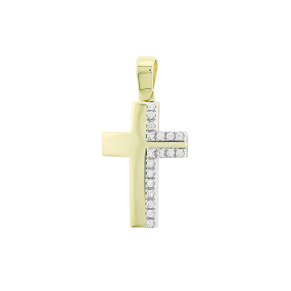 Σταυρός Γυναικείος από κίτρινο χρυσό 14 καρατίων με λευκές πέτρες ζιρκόν.