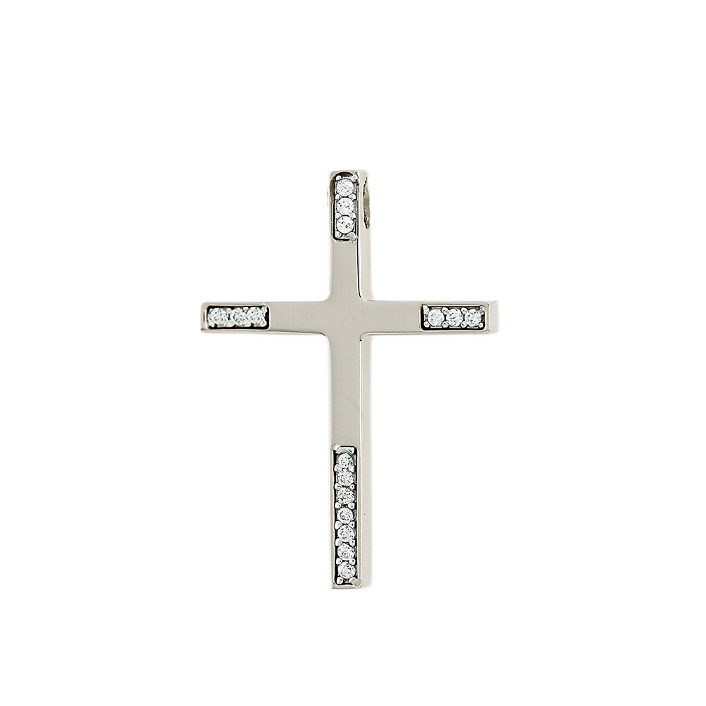 Σταυρός γυναικείος από λευκό χρυσό 14 καρατίων με ζιρκόν πέτρες