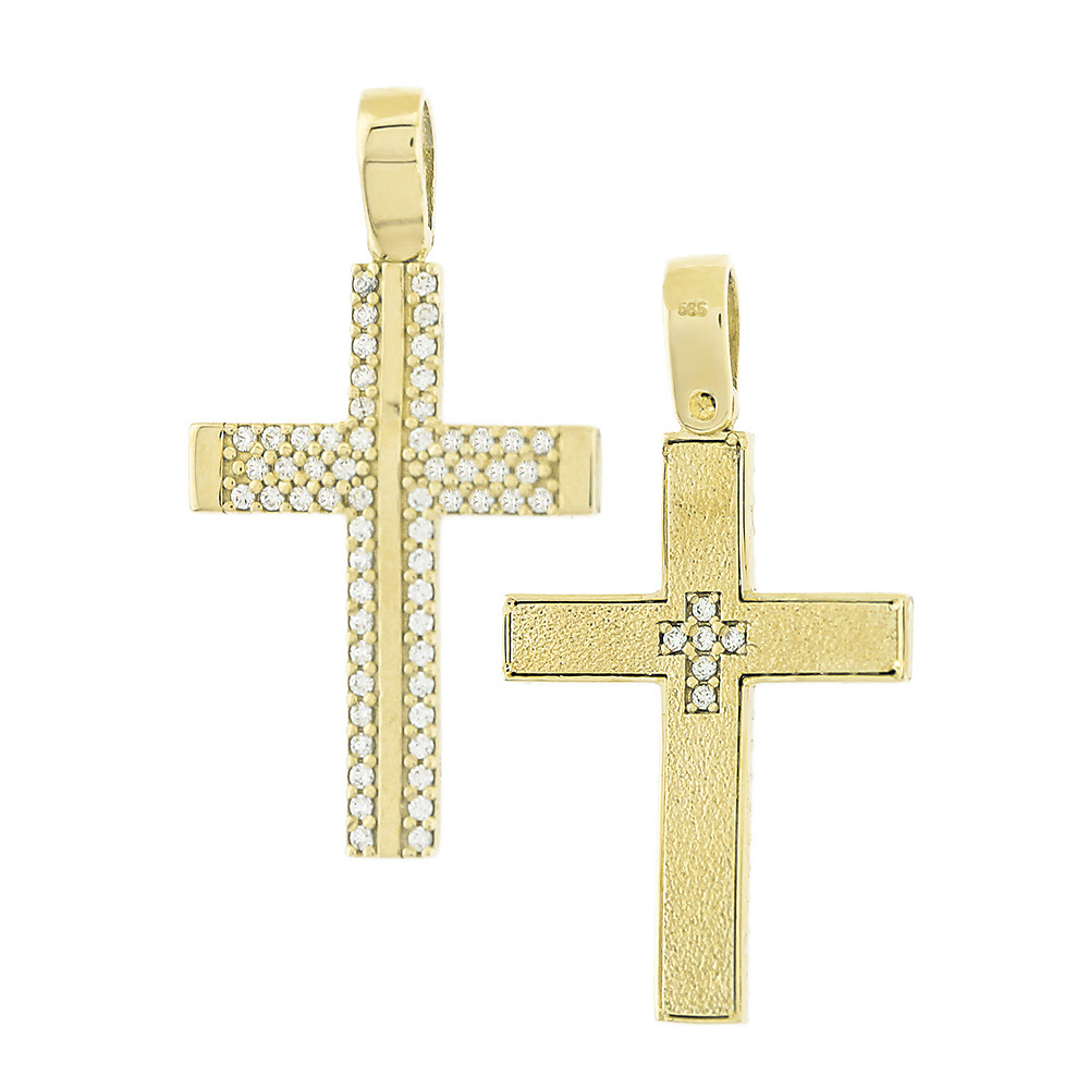 Σταυρός γυναικείος από κίτρινο χρυσό 14 καρατίων με ζιρκόν πέτρες