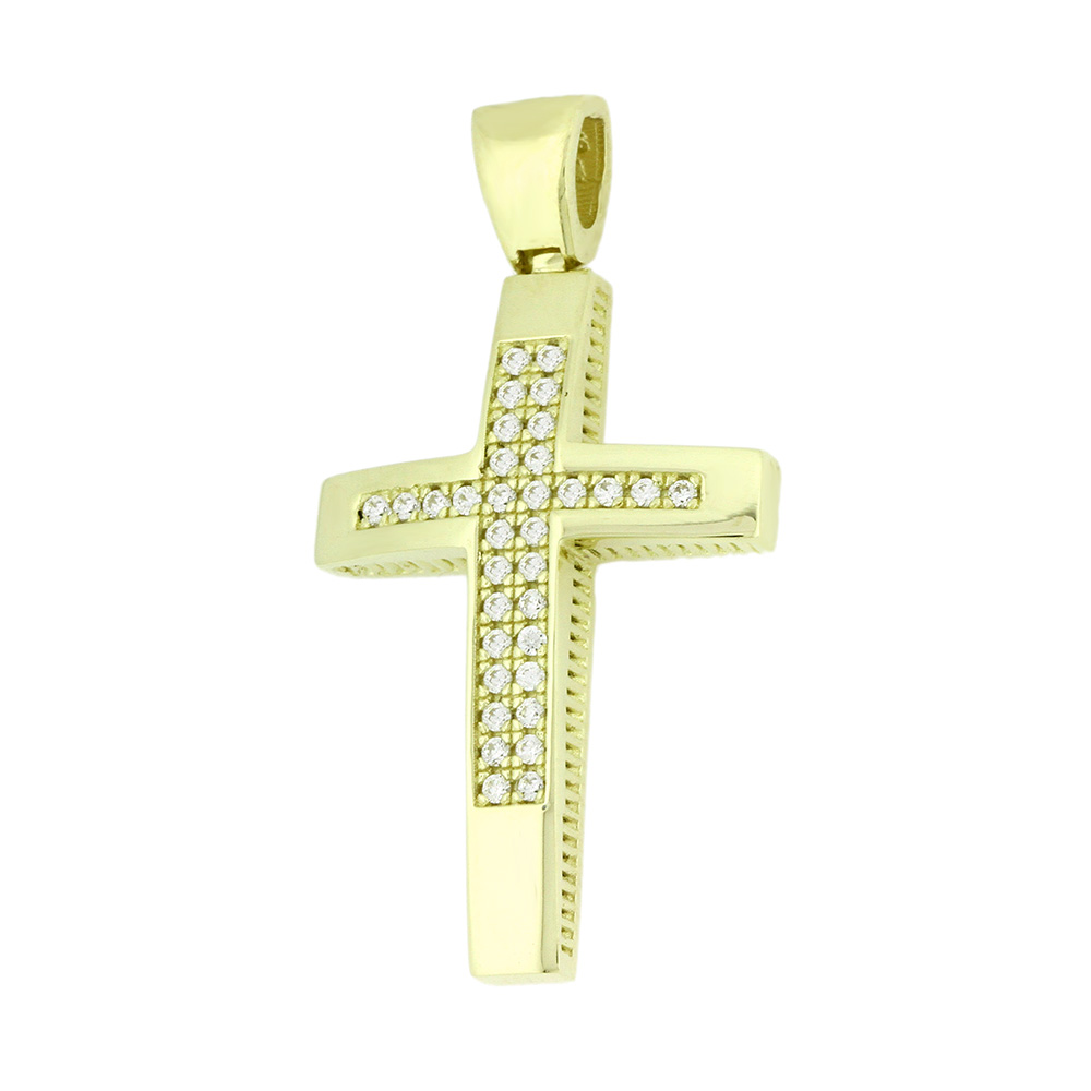 Σταυρός γυναικείος από κίτρινο χρυσό 14 καρατίων με ζιρκόν πέτρες