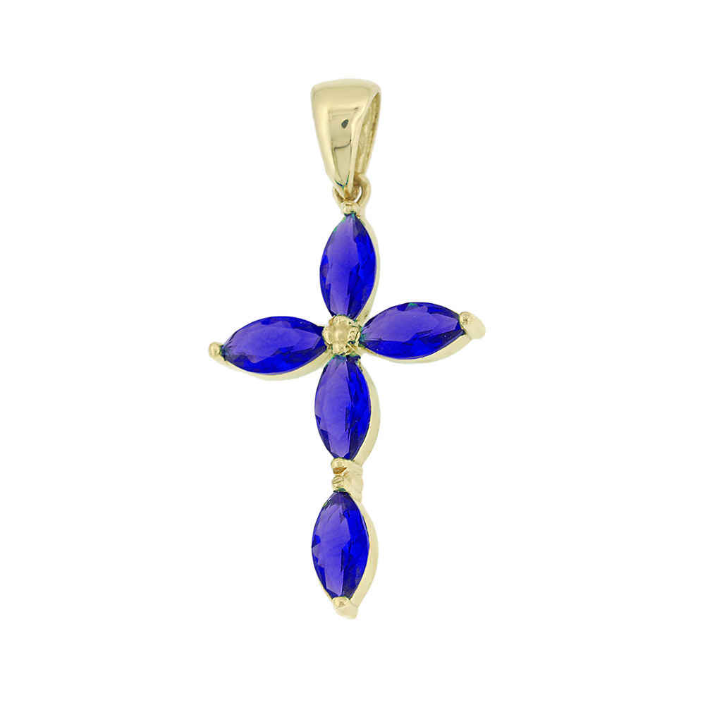 Σταυρός γυναικείος από κίτρινο χρυσό 14 καρατίων με ζιρκόν πέτρες