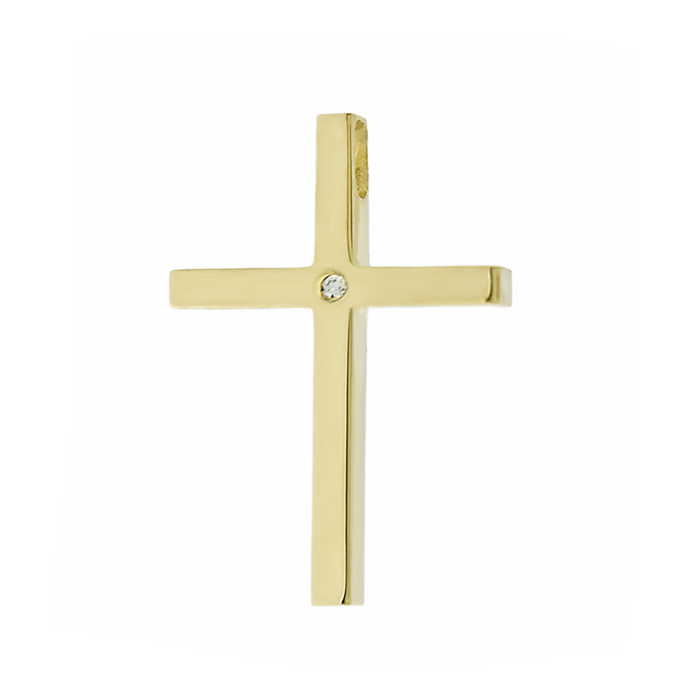 Σταυρός γυναικείος από κίτρινο χρυσό 14 καρατίων με ζιρκόν πέτρες