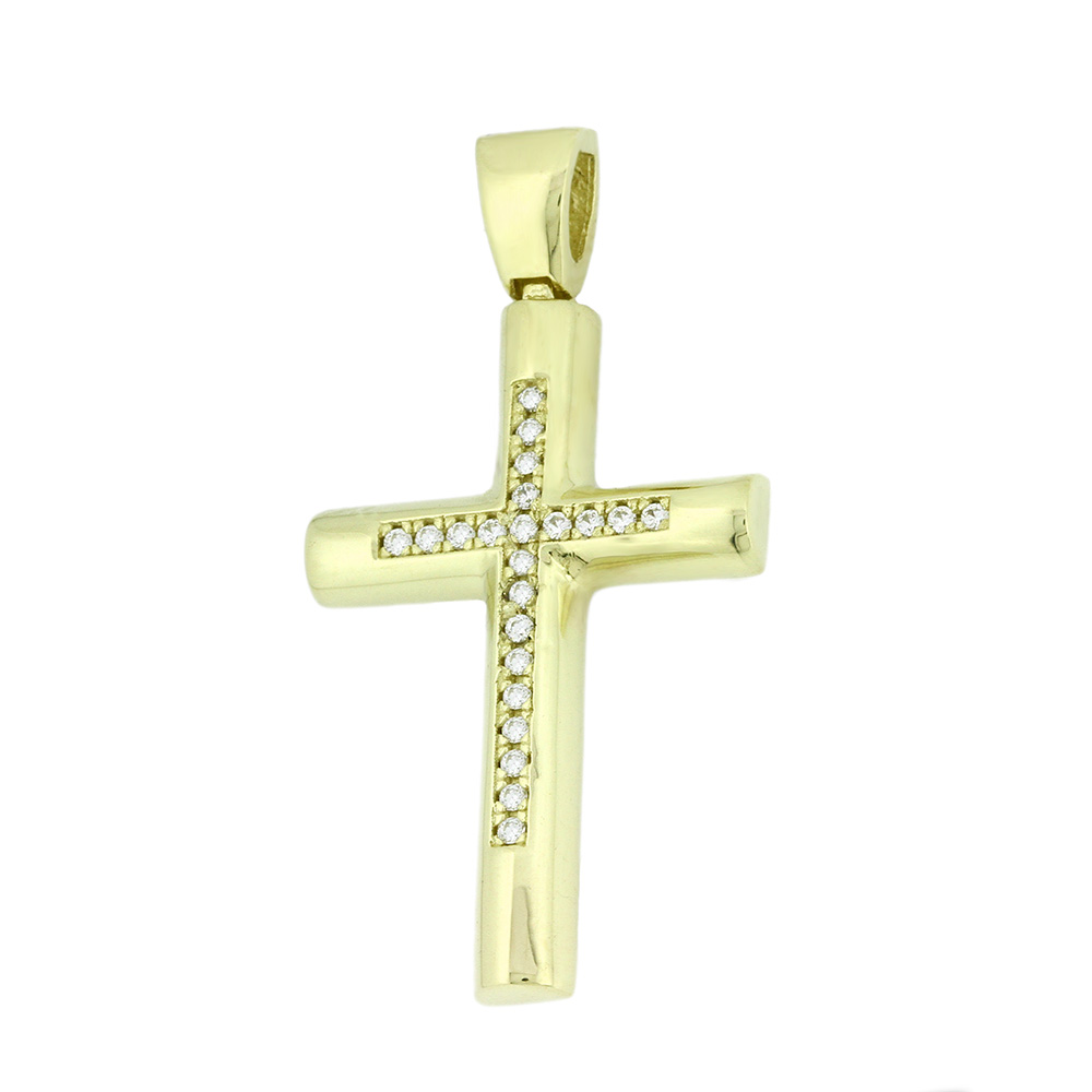 Σταυρός γυναικείος από κίτρινο χρυσό 14 καρατίων με ζιρκόν πέτρες