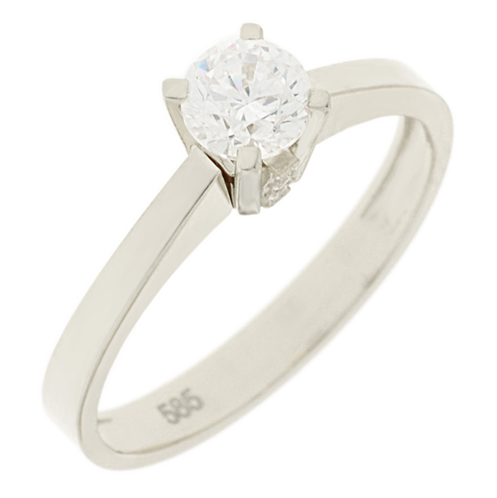 Δαχτυλίδι γυναικείο μονόπετρο απο λευκό χρυσό 14 καρατίων με ζιρκόν.