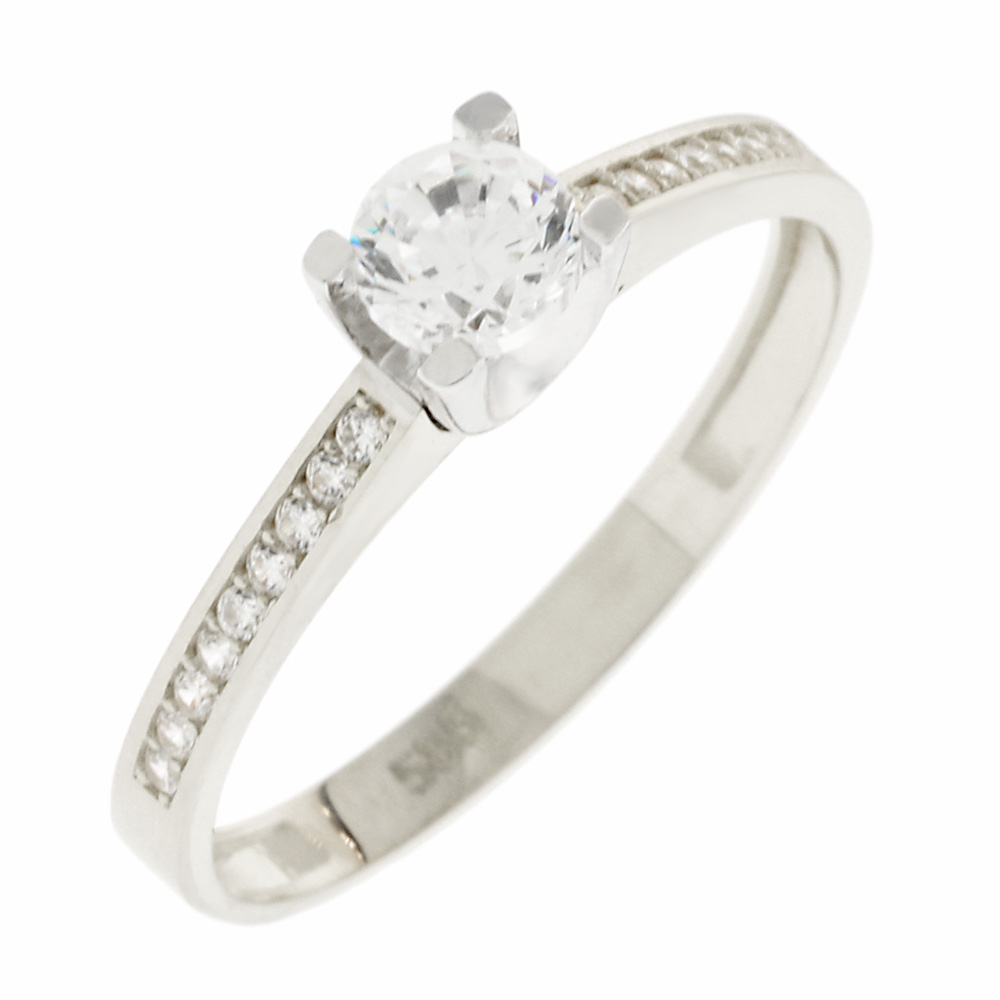 Δαχτυλίδι γυναικείο μονόπετρο απο λευκό χρυσό 14 καρατίων με ζιρκόν.