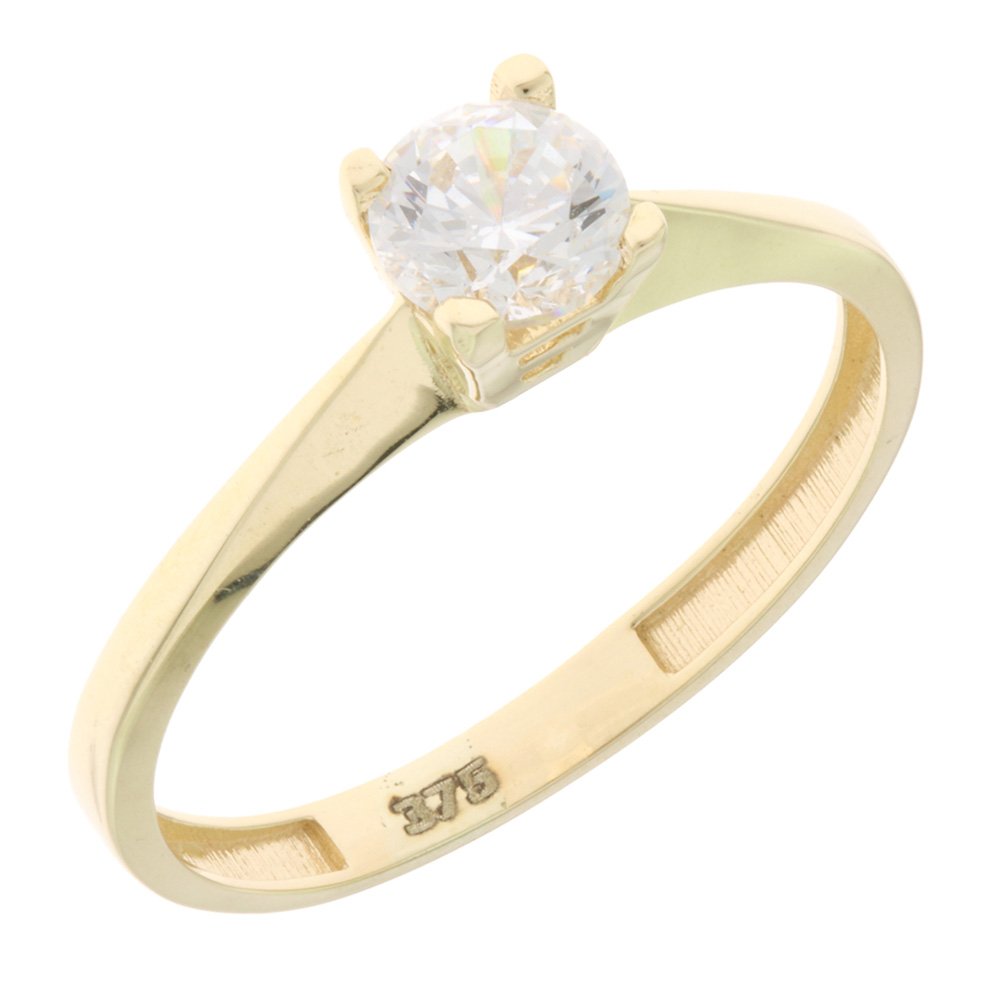 Δαχτυλίδι γυναικείο μονόπετρο απο κίτρινο χρυσό 9 καρατίων με ζιρκόν .