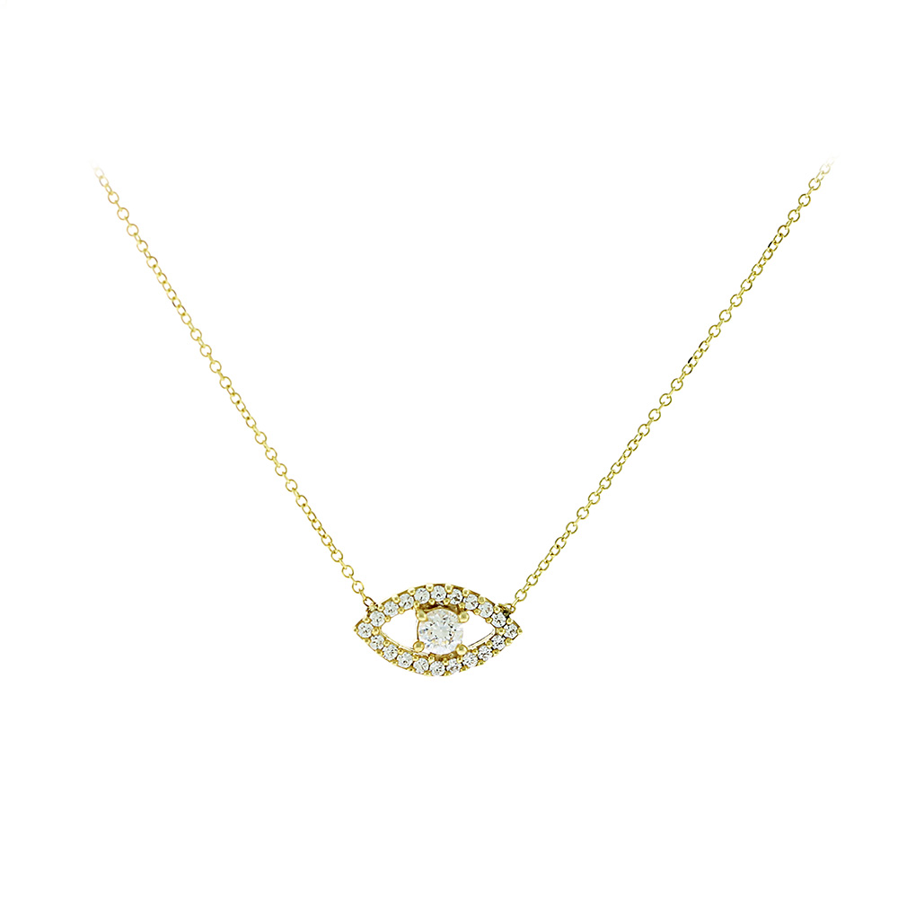Κολιέ γυναικείο από κίτρινο χρυσό 9 καρατίων ματάκι με ζιρκόν.