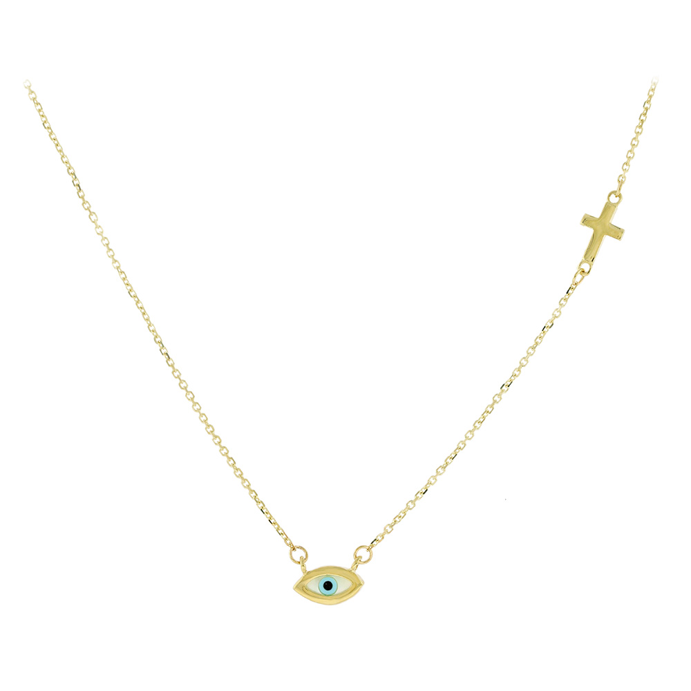 Κολιέ γυναικείο από κίτρινο χρυσό 9 καρατίων μάτι-σταυρός.