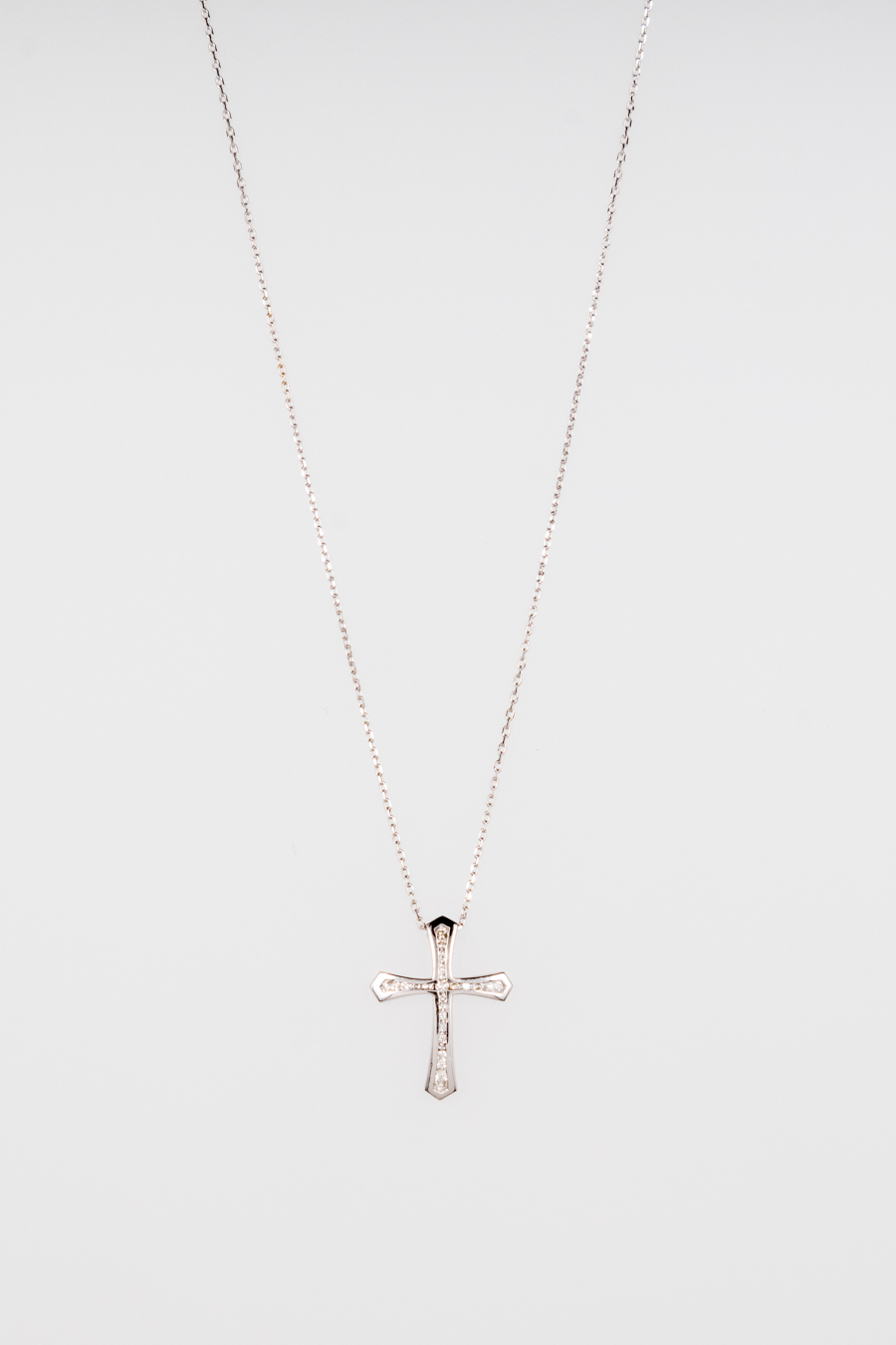 Κολιέ γυναικείο από λευκό χρυσό 18 καρατίων σταυρός με διαμάντια σε κοπή Brillant (Br).