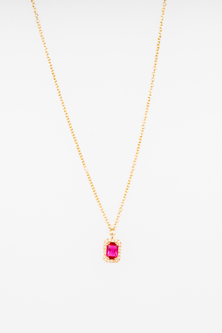 Κολιέ γυναικείο από κίτρινο χρυσό 14 καρατίων με κόκκινη  ζιρκόν πέτρα.