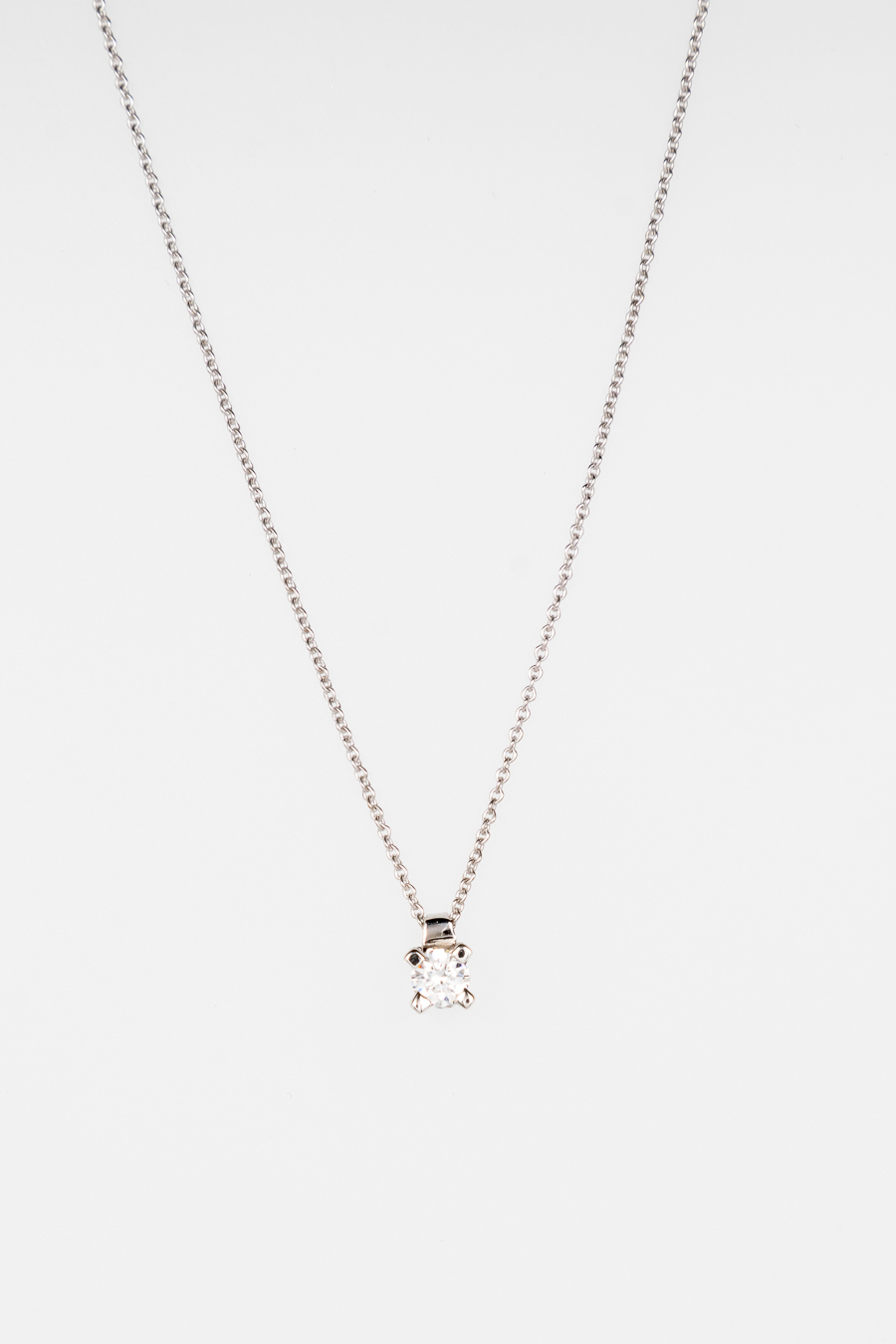 Κολιέ γυναικείο από λευκό χρυσό 14 καρατίων μονοπετράκι .