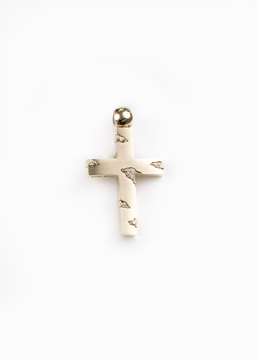 Σταυρός γυναικείος από κίτρινο χρυσό 14 καρατίων με ζιρκόν.
