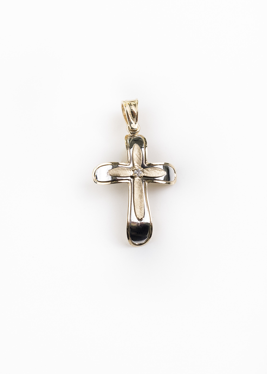 Σταυρός γυναικείος από κίτρινο χρυσό 14 καρατίων με ζιρκόν.