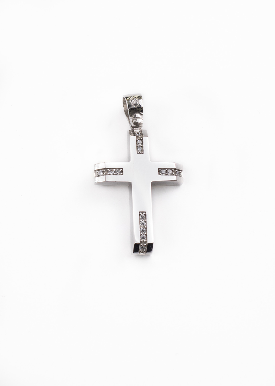 Σταυρός γυναικείος από λευκό χρυσό 14 καρατίων με ζιρκόν