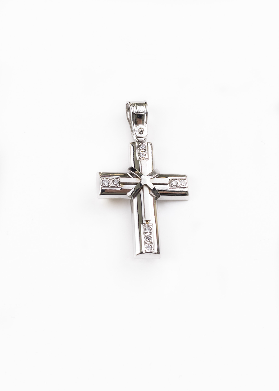 Σταυρός γυναικείος από λευκό χρυσό 14 καρατίων με ζιρκόν
