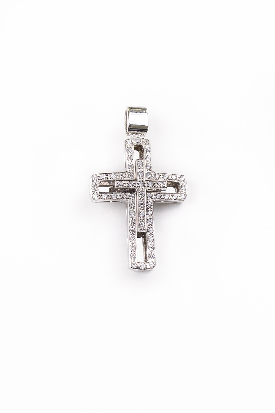 Σταυρός γυναικείος από λευκό χρυσό 14 καρατίων με ζιρκόν