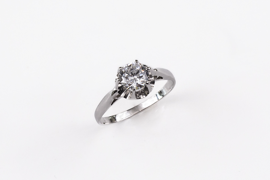 Μονόπετρο δαχτυλίδι από λευκό χρυσό 14 καρατίων με ζιρκόν.